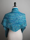 This shawl is knit in several directions, starting with the ribbed cabled band that forms the lower edging. Next stitches are picked up along one side and short rows are used to form the main body. Finally, stitches are picked up along the bottom edge for the final border.