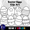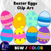 There are a total of 8 black and white Easter eggs and 8 colorful Easter eggs for your projects.