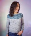 A DK companion to Yellow Brick Rodeo, this top-down circular yoke knits up quickly and keeps you cozy whether you're out on the range or visiting your favorite yarn shop.