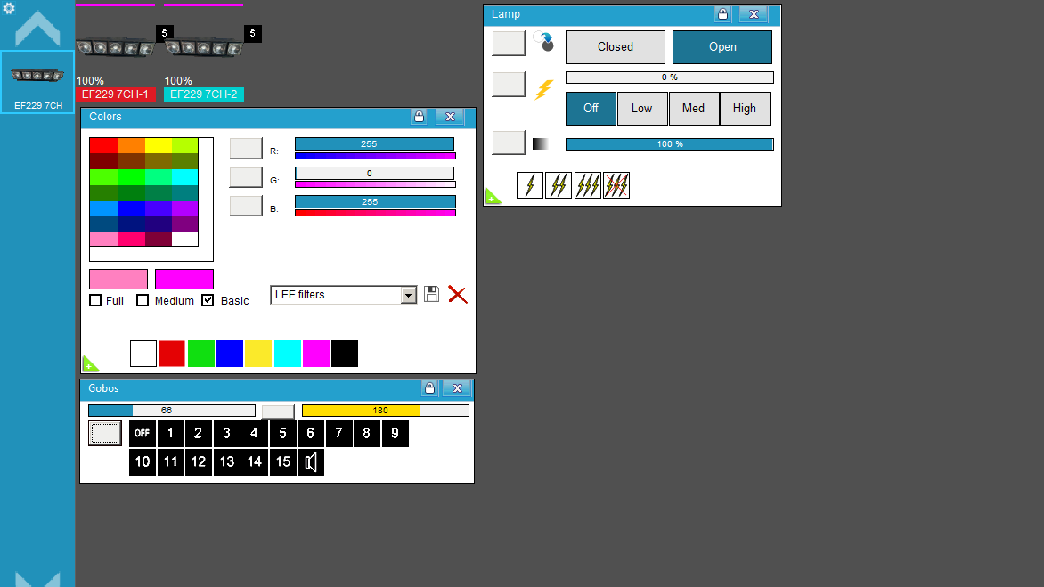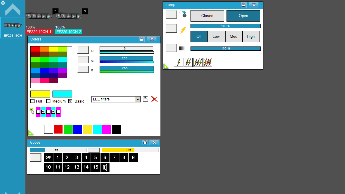 Librerías para Freestyler DMX de la barra Led "EF229" de TecnoLuces ( 7-15-19CH 5x30w RGB Led Matrix Light ).