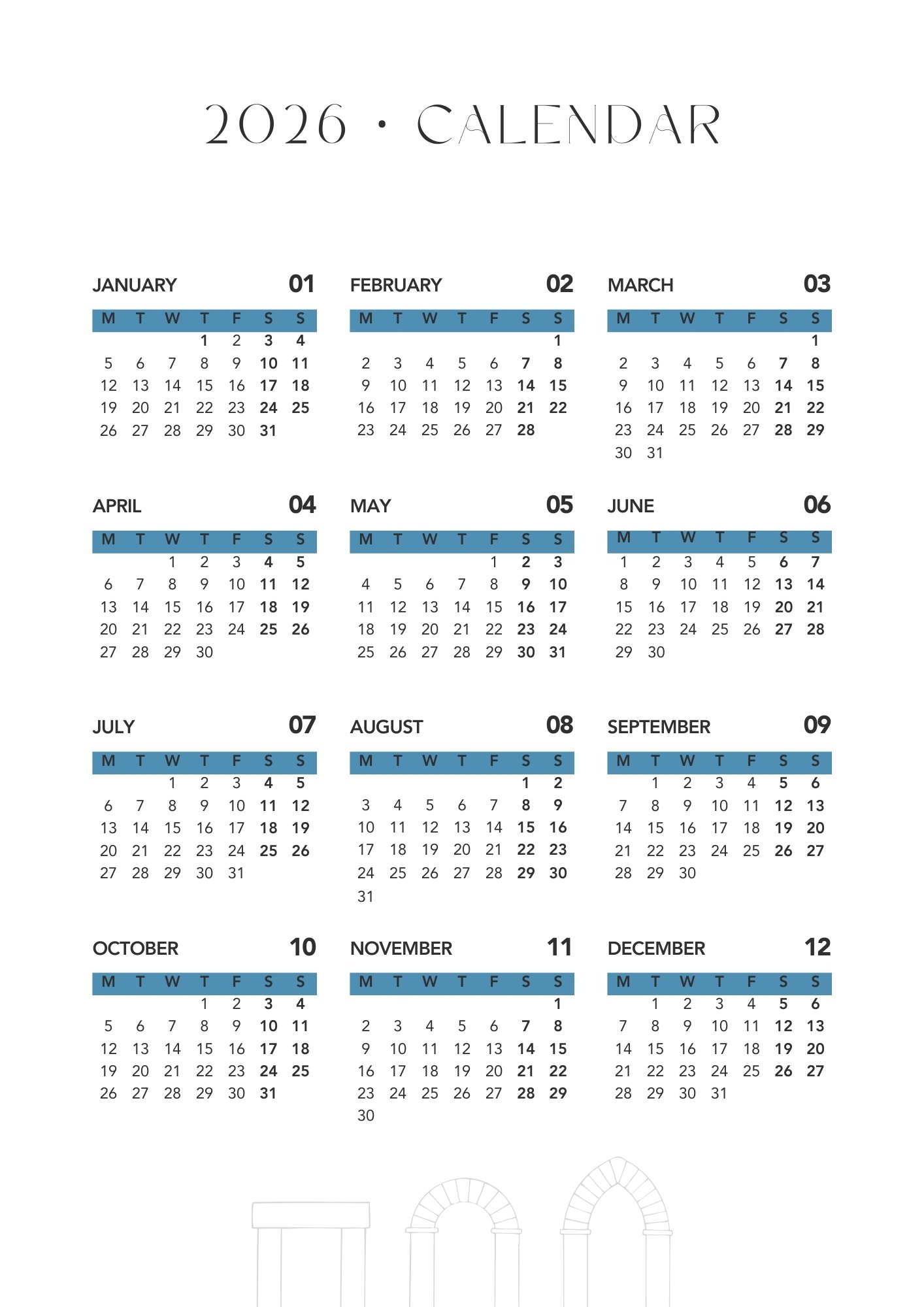 This calendar is not designed to optimize productivity, but to offer a quiet framework for moving through the year.