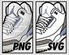 Air Jordan 3 UNC JPEG PNG SVG Left & Right shoe bundle digital download