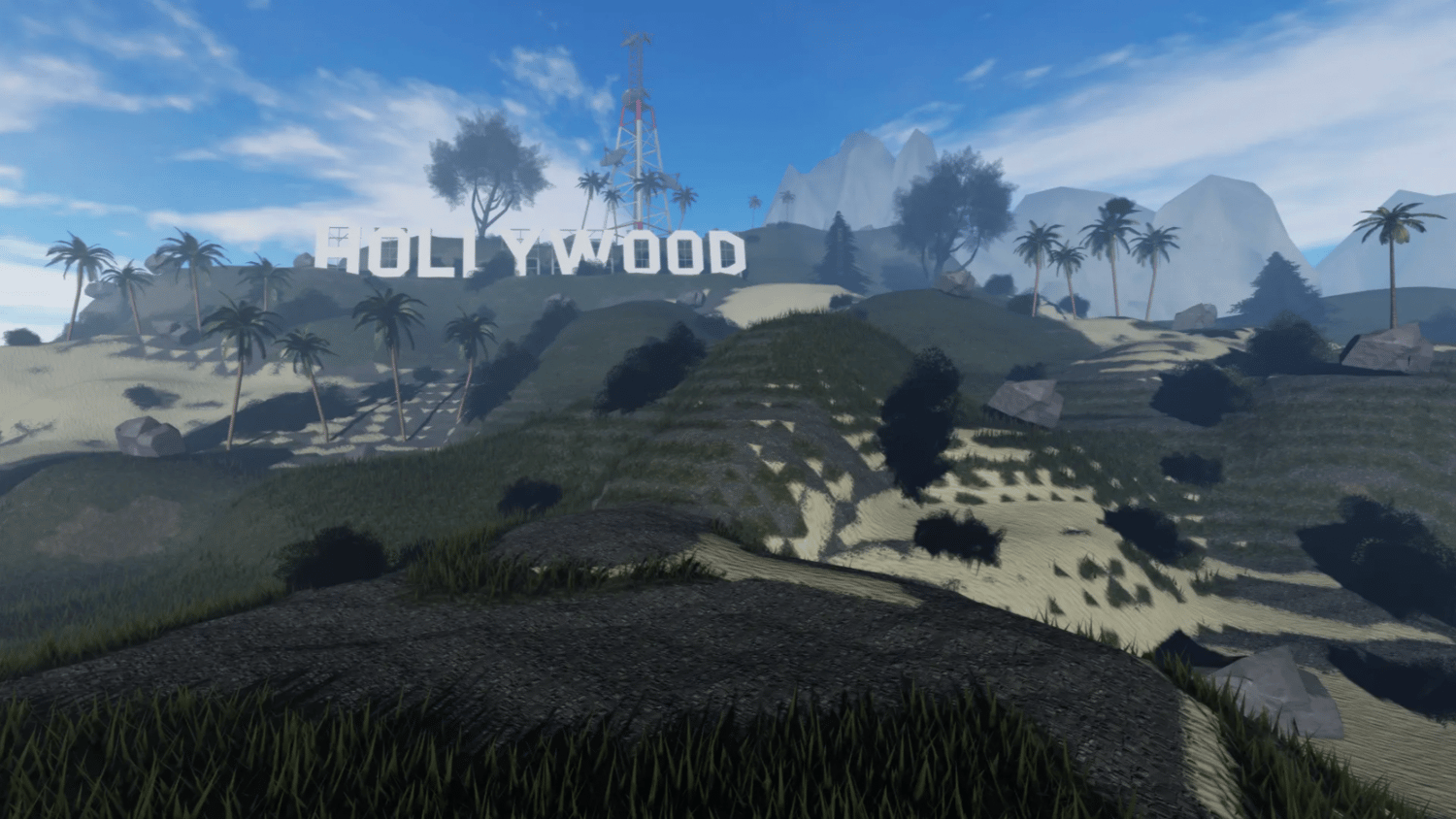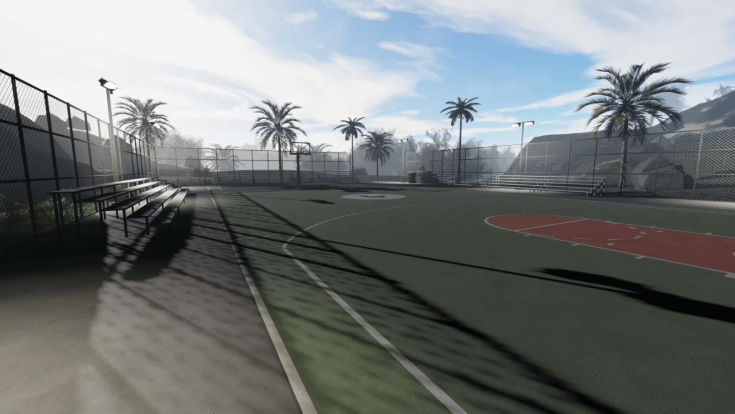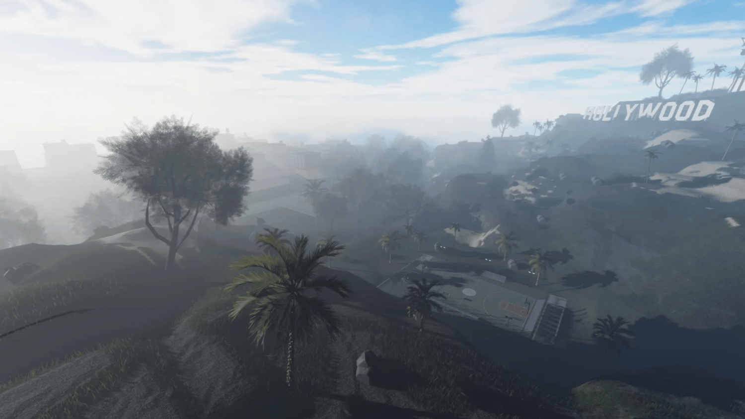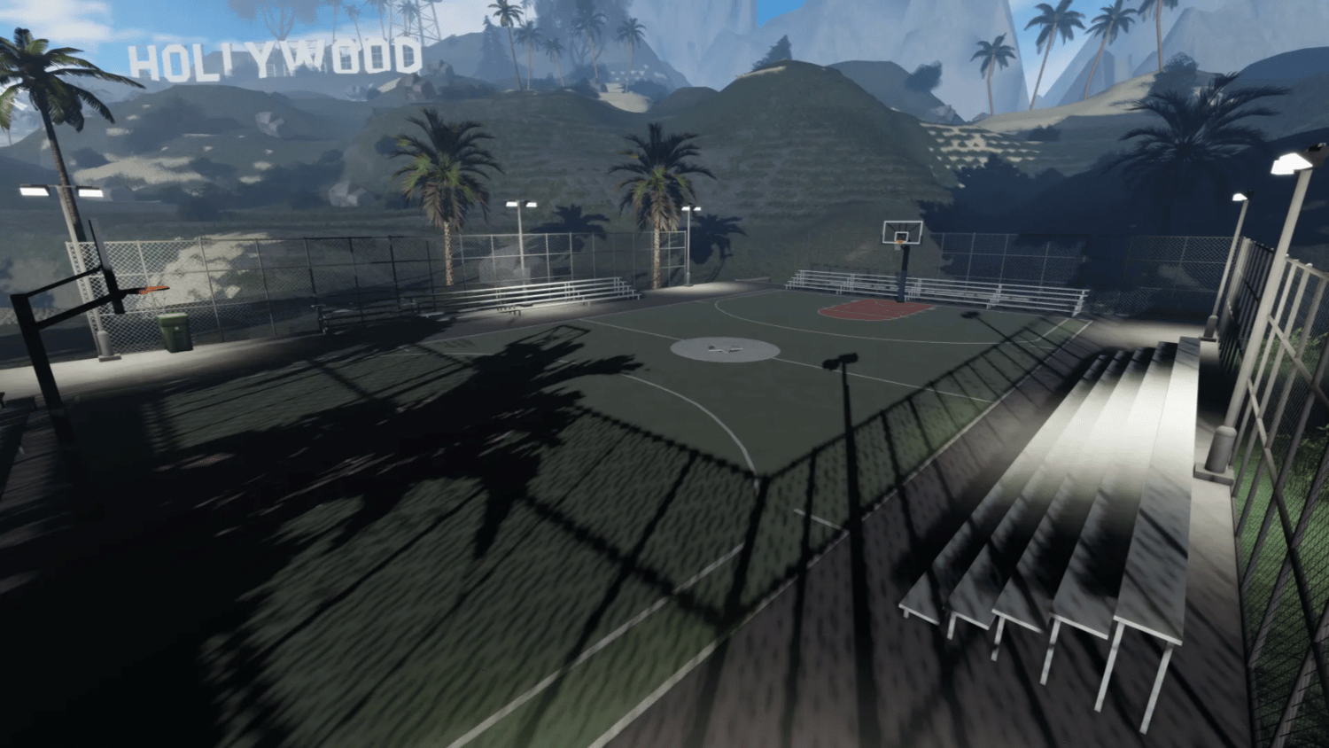 Basketball court on Hollywood Hills on sale with immediate delivery, created on Roblox Studio.