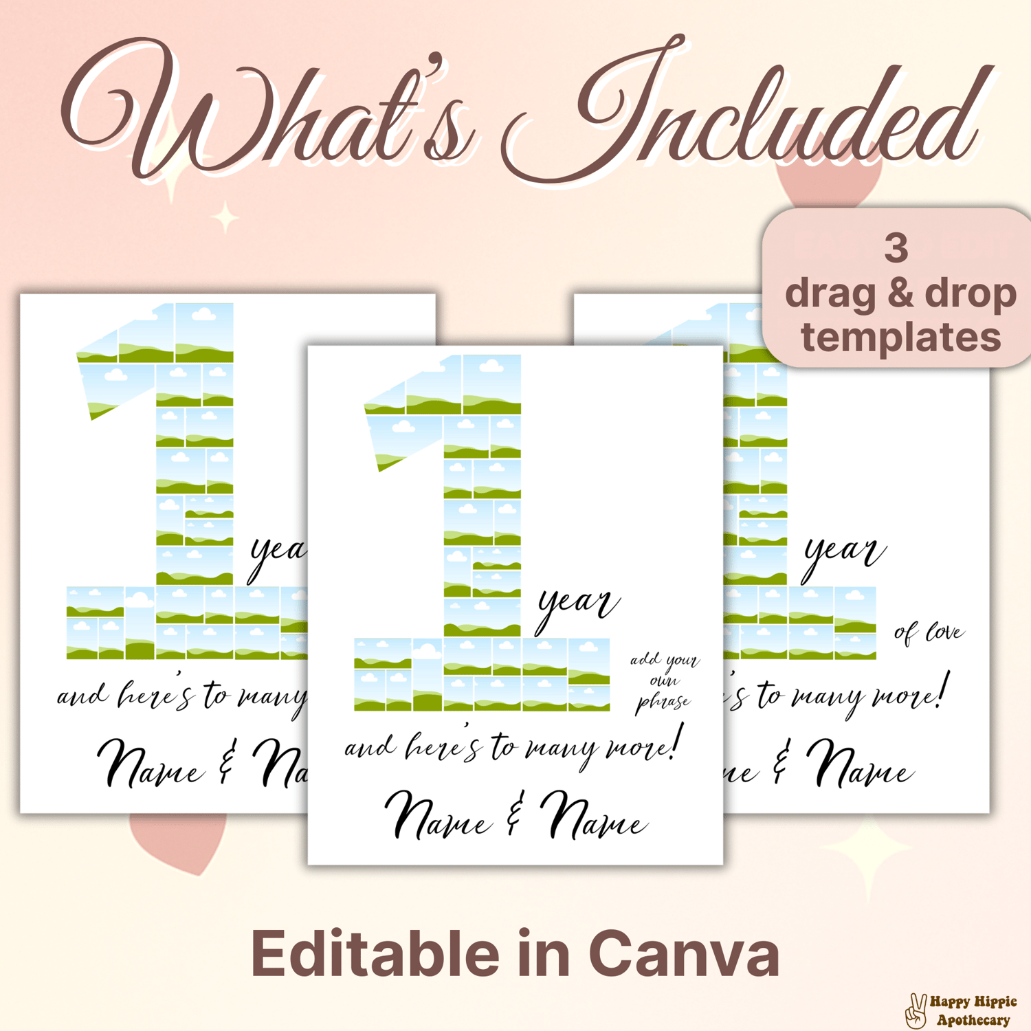 1 Year Anniversary Canva Template – Romantic Editable Photo Collage | Digital Download