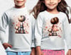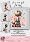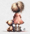 Little girl and boy with teddy bear; 10 girls (short hair & pony), 5 boys. Separate background. 4 hair colours; blonde, brunette, Titian and black. Darker skin options. high quality PNGs, sublimation or print. Ideal for wall or clothing decorations, as we