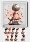 Little girl and boy with teddy bear; 10 girls (short hair & pony), 5 boys. Separate background. 4 hair colours; blonde, brunette, Titian and black. Darker skin options. high quality PNGs, sublimation or print. Ideal for wall or clothing decorations, as well as mugs, cards etc.