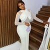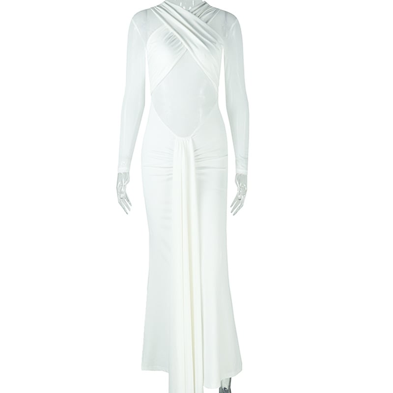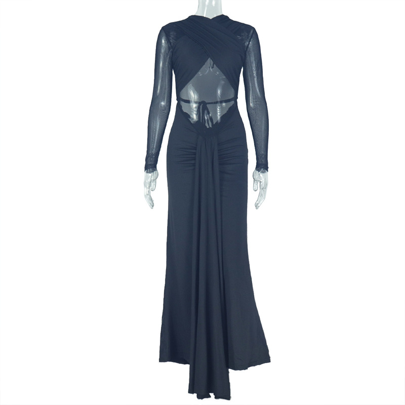 Elegant and Simple Women's Sexy Fitted Pencil Skirt with Slight Sheer One-Step Pure Color Pleated Wrap Chest Long Dress