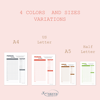You will receive 4 ZIP Files (A4, Letter size (US), A5 and Half Letter); each ZIP file contains 4 PDF Files (Pink, Blue, Brown and Green color)