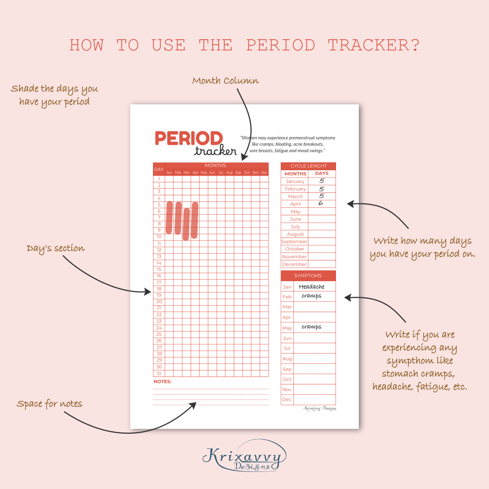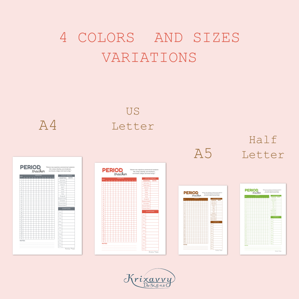 Period Tracker insert in A4, A5, US Letter, Half Letter