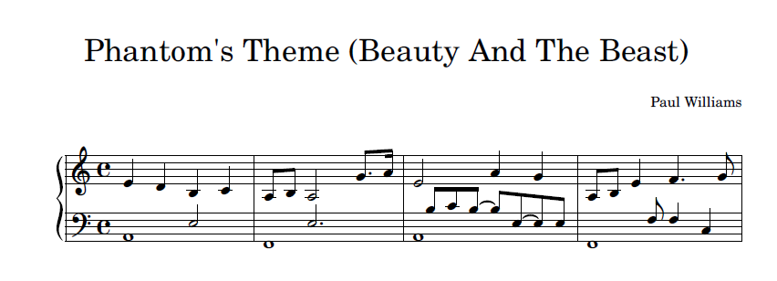 Phantom Of The Paradise - Phantom's Theme (Beauty and The Beast) - Sheet Music for piano solo.