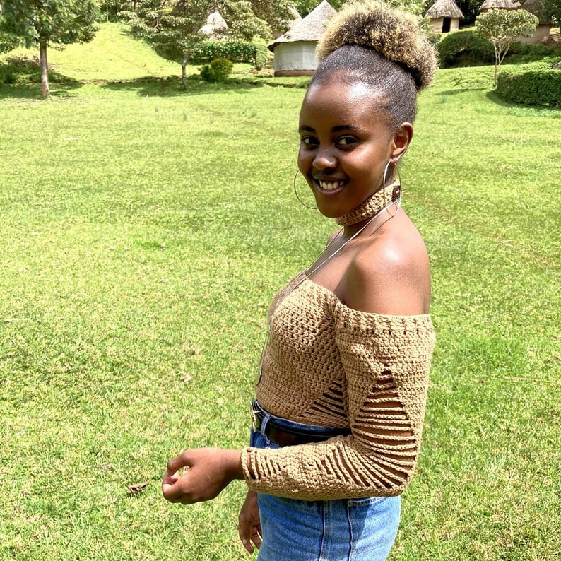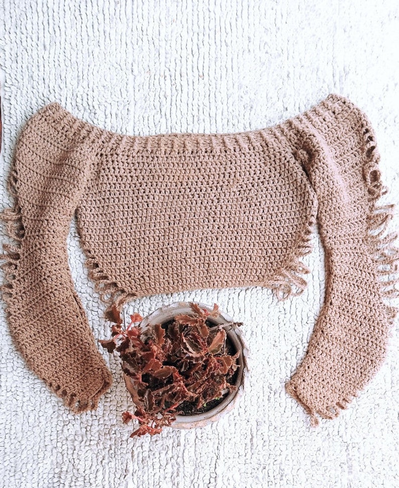 Pattern crochet distressed sweater top, PDF crochet pattern,