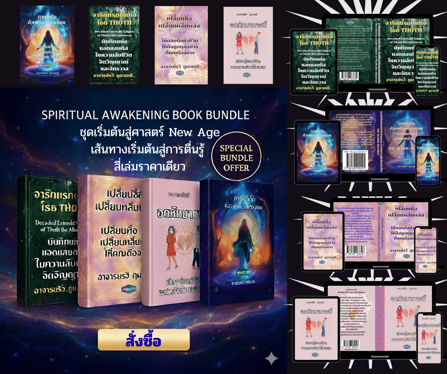 🌌✨ บันเดิ้ลแห่งการตื่นรู้จิตวิญญาณ – 4 เล่มกว่า 1,500 หน้า + แพลนเนอร์ + อีบุ๊คโบราณกว่า 50 เล่ม ✨🌌