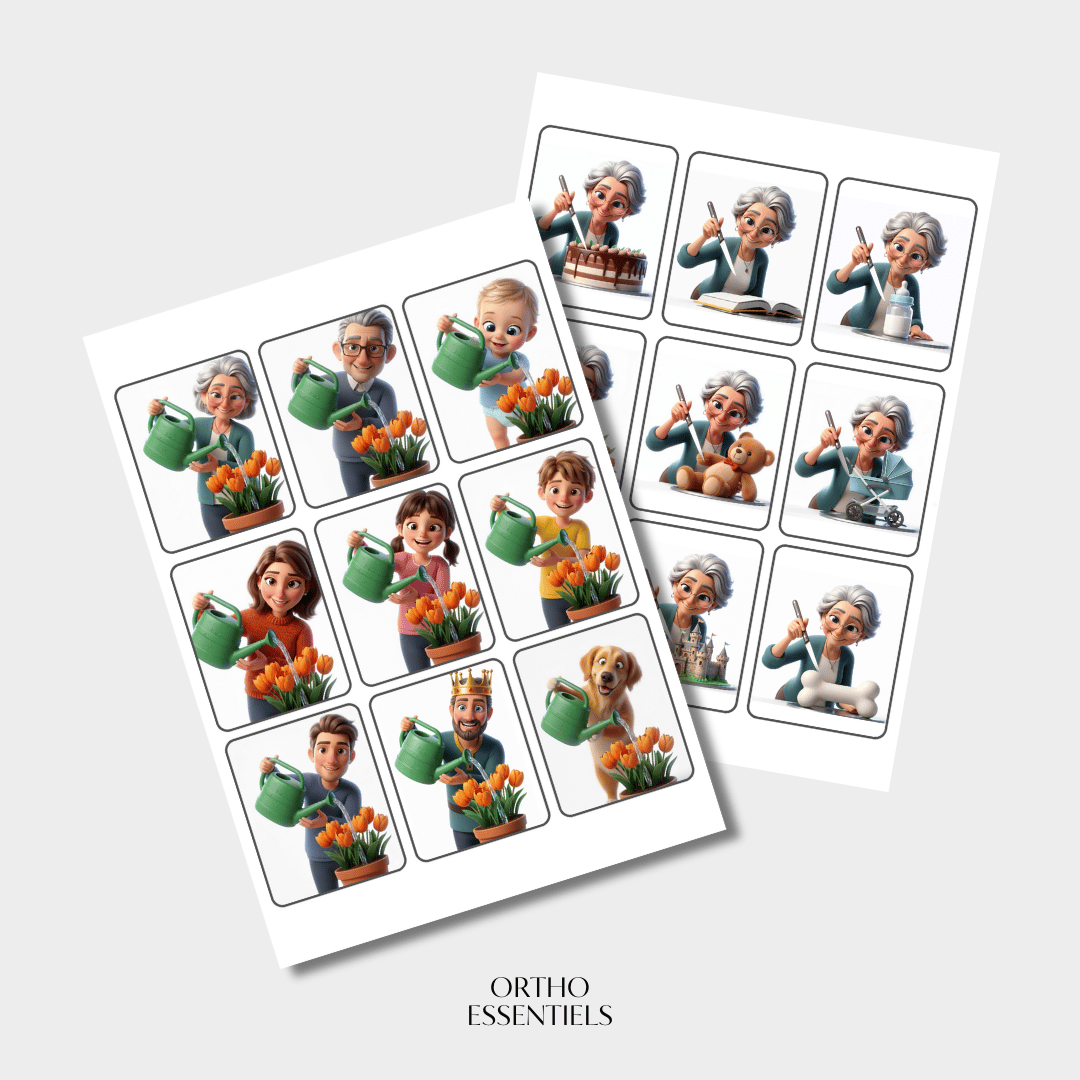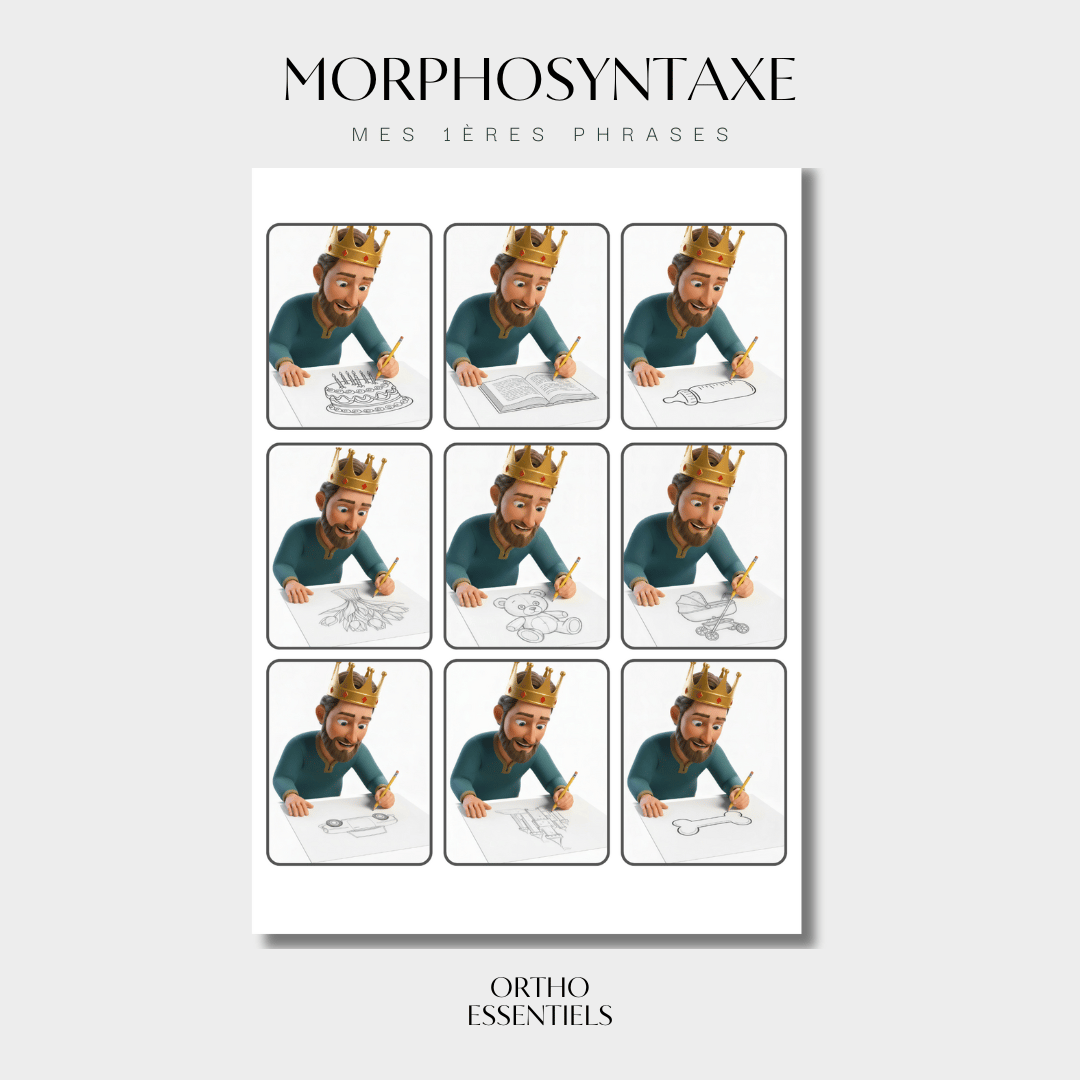 Ce fichier comprend 72 images permettant de travailler la construction de phrases simples de type Sujet + Verbe + Complément. Ce fichier est une adaptation libre inspirée du jeu “Mes premières phrases” (MégaBleu) et s’utilise en parallèle des pièces du jeu pour enrichir et diversifier les productions orales.