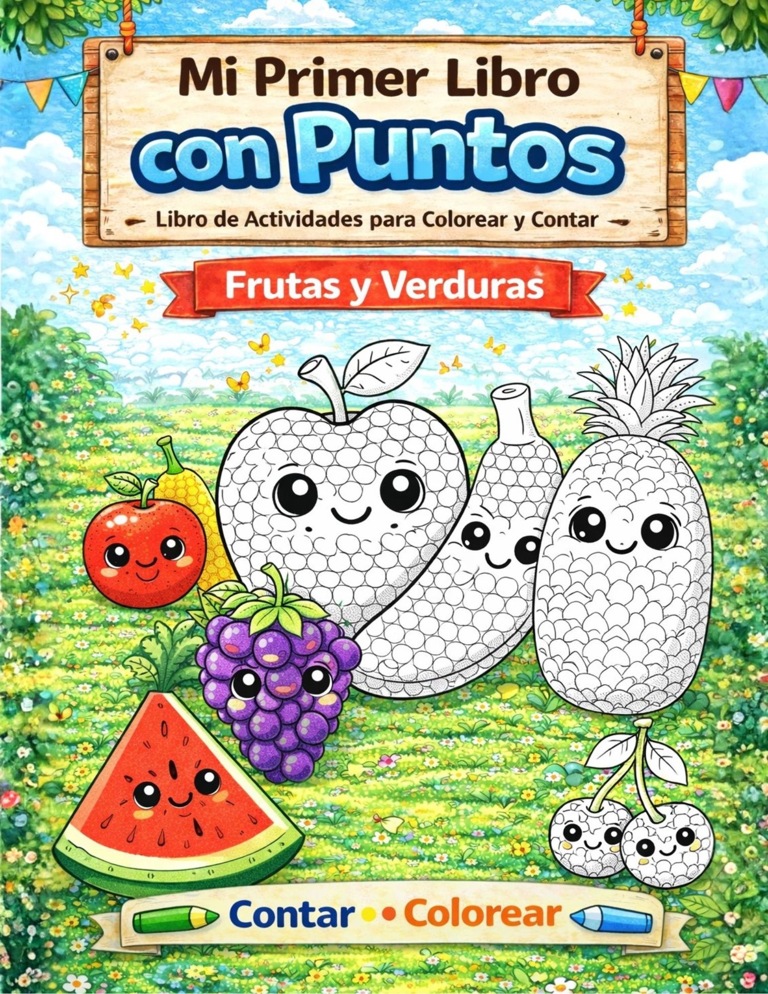 Cada página invita al niño a contar, colorear y trabajar con paciencia, utilizando lindas ilustraciones de frutas y verduras llenas de puntos que hacen del aprendizaje una experiencia positiva y entretenida.