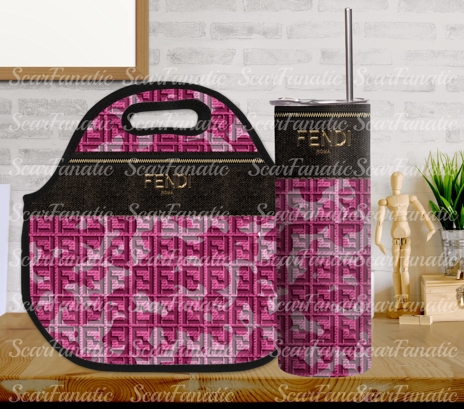 Pink Camouflage and Gold Betty Boop FND 20oz Skinny Tumbler Design and Lunch Tote PNG Design Bundle, Sublimation