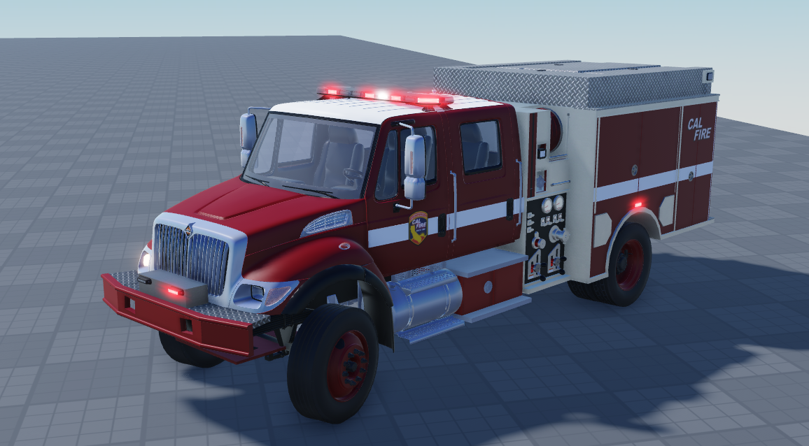 Comes with 3 stages of ELS including 3 stages of directionals. These include right, left and split. The vehicle also comes with A-chassis so it isn't static. The vehicle doesn't come with any sirens so you will have to add your own. Each stage of ELS is unique but only Stage 3 is shown. The ELS is based off of Corona's CalFire Type 3 and the body is based off of Santa Cruz's CalFire Type 3.