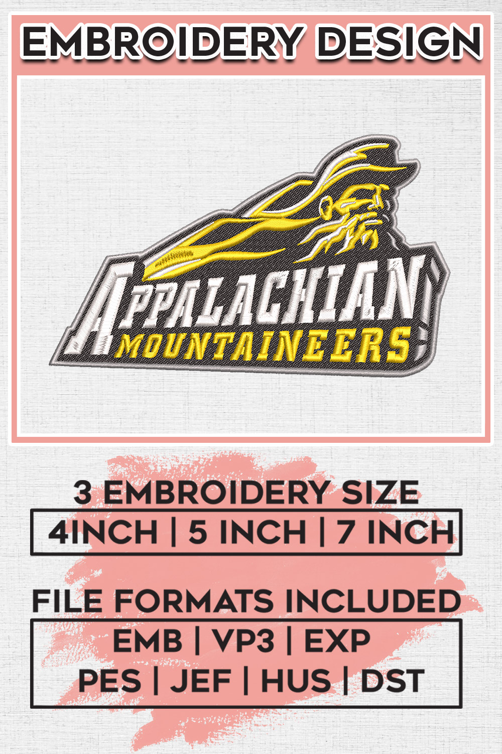 NCAA App State Mountaineer Team Logo Embroidery Files, NCAA App State Football Team Embroidery, NCAA Teams, Game Days, Machine embroidery designs, Digital Download