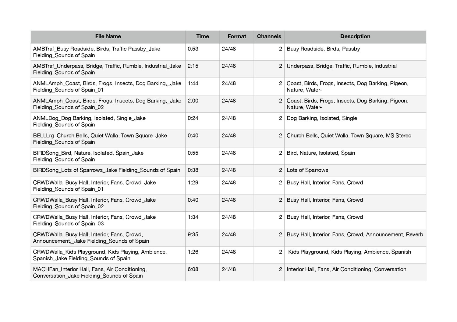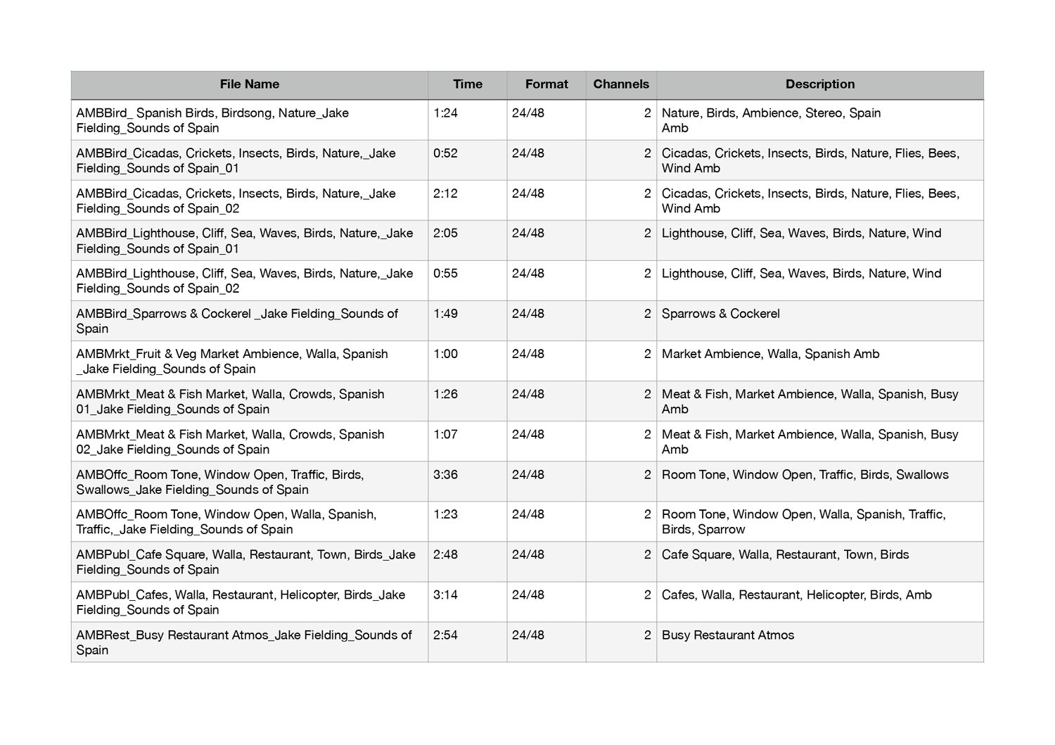 These files have been meticulously tagged with UCS Metadata, ensuring seamless integration into your Film, TV, or Game projects. Experience the authenticity and richness of Southern Spain, as these evocative ambience recordings transport your audience to the heart of this captivating region.
