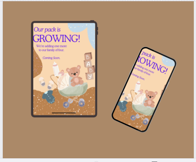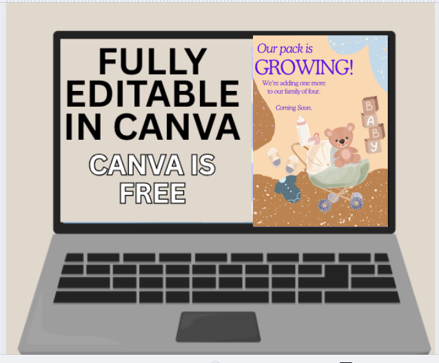 Pregnancy Announcement Canva Editable l Neutral Boho Simple Social Media Reveal Teddy Bear Simple (Canva Template Digital Download)
