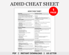 ADHD Cheat Sheet, Attention Deficit Hyperactivity Disorder Therapy, ADHD Therapy, ADHD Tools, Executive Functioning, Reference Guide