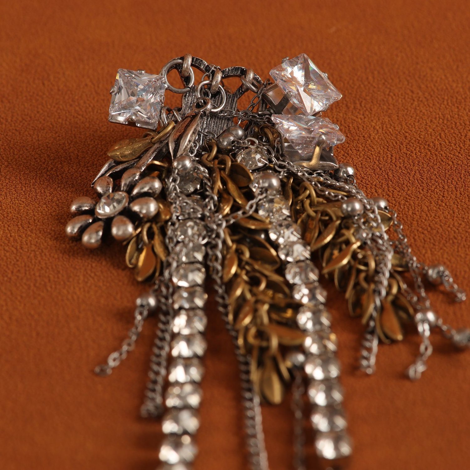 Vintage wheat silver flower tassel rhinestone drop earrings