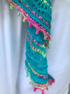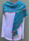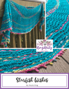 Starfish Wishes is a crescent shaped shawl, which uses tiny star stitches and lace wavelets spreading out to a generous wingspan, with a gently undulating border created by the lace sections and picot border.