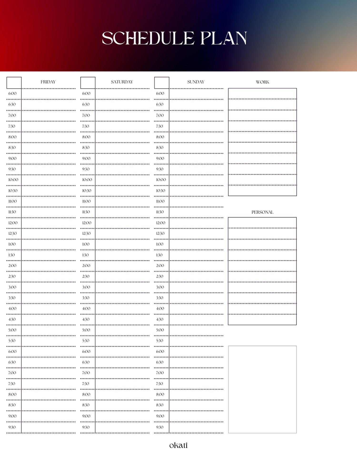 • Weekly Overview: A full week’s schedule is available, with a consistent layout for all seven days.