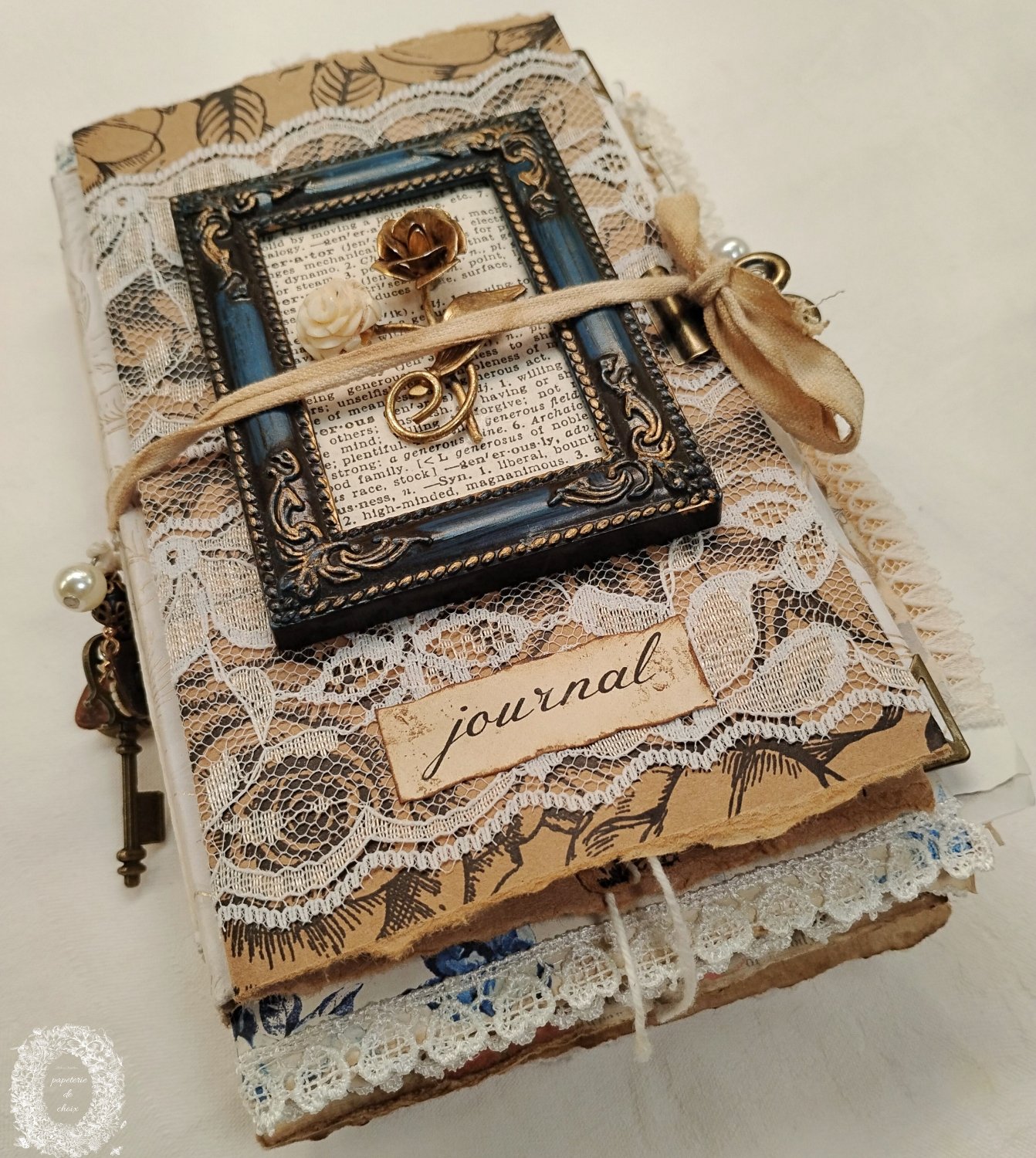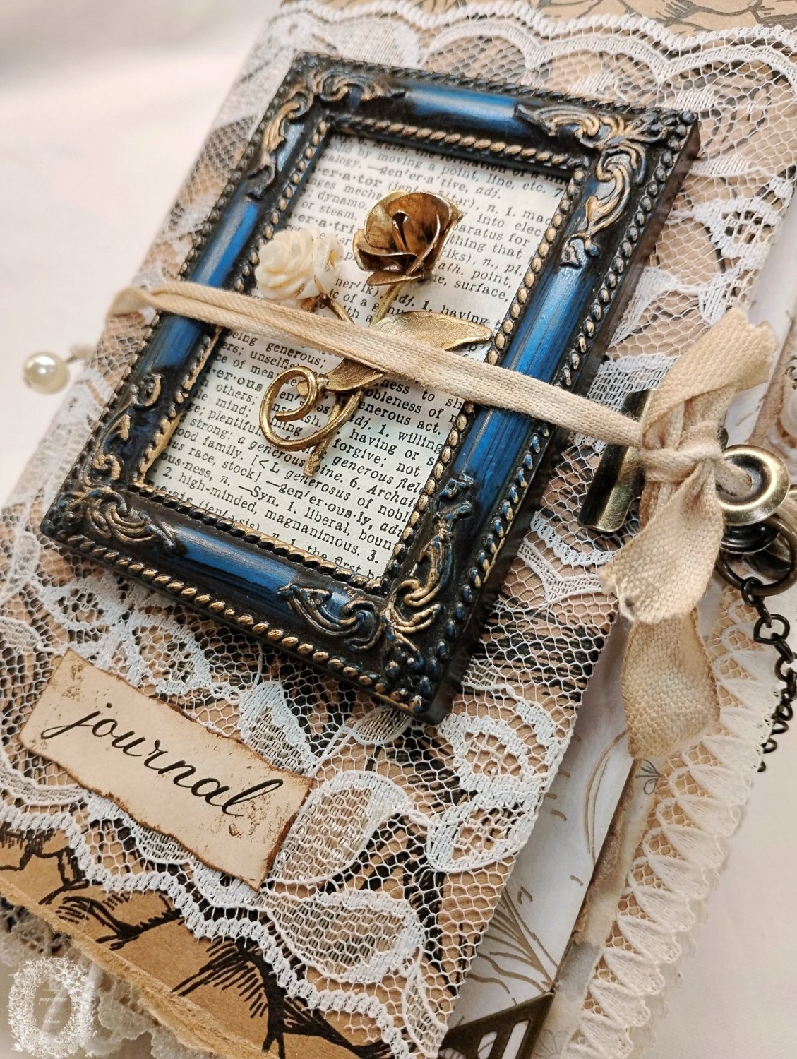 I saw a picture of a journal with pages bigger than the cover, and instantly fell in love with the look! I had this small little blue frame that I wanted to use somehow, but nothing seemed to fit until I saw that journal.