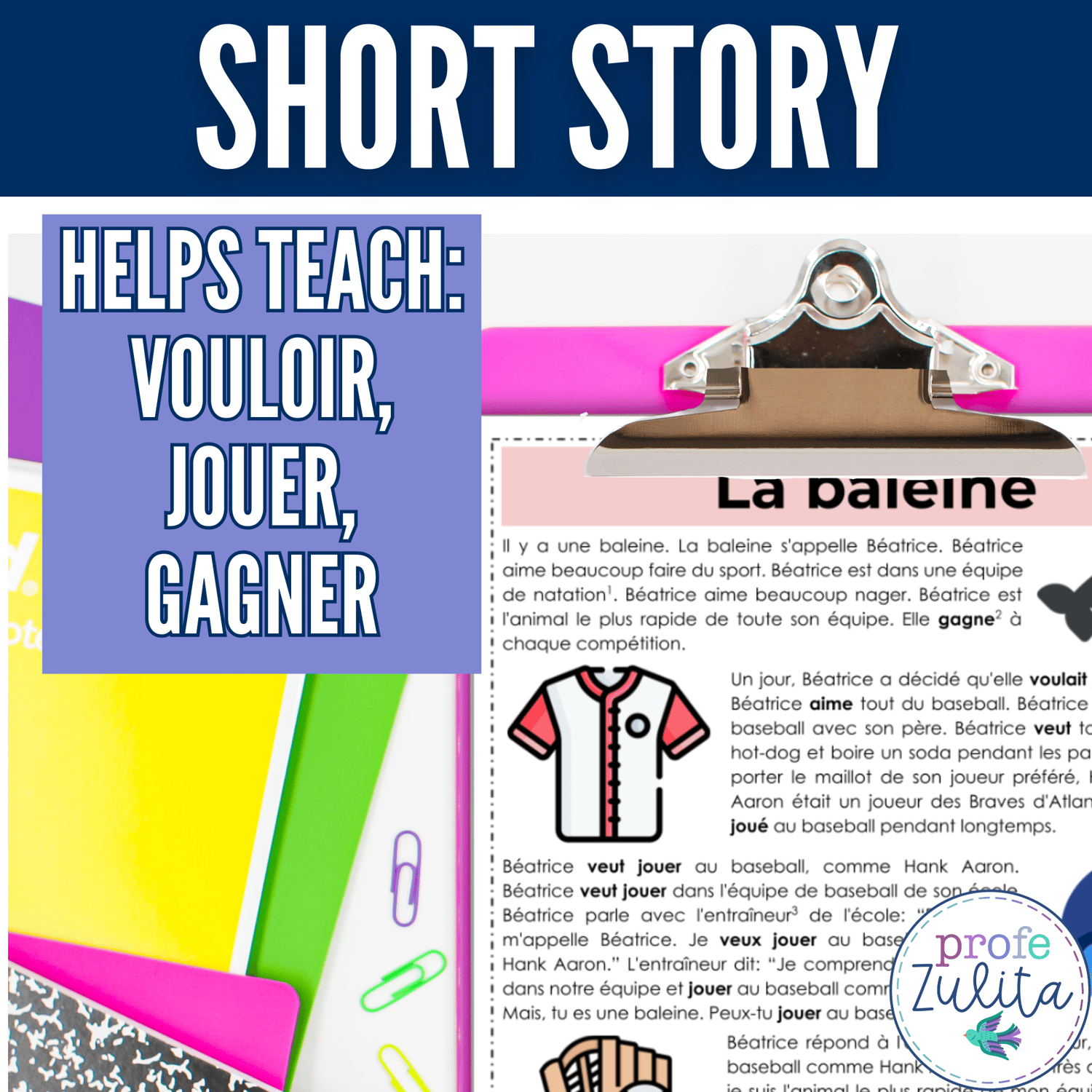 This Novice French Story Unit includes 3 - 4 days of materials, but can easily be expanded into more by pre-teaching vocabulary, using the verbs for PQA questioning, creating a story with your students, and more. Students will receive comprehensible input with the verbs vouloir, jouer, gagner in French. This unit is perfect for French 1 or Exploratory French in Middle School or High School and beyond.