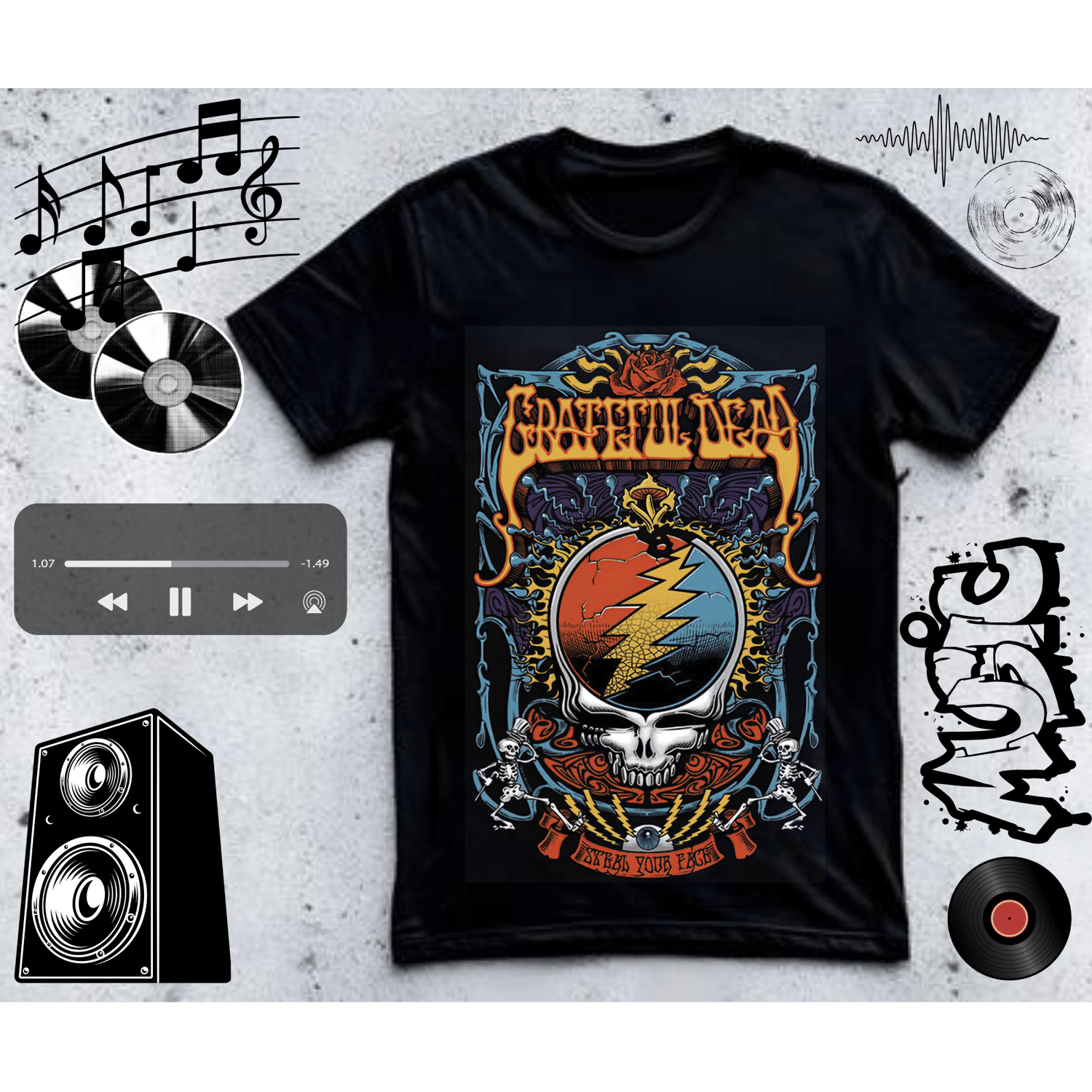 - Retro rock band merchandise