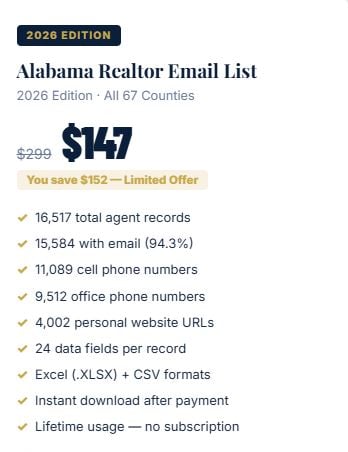 Alabama Real Estate Agent Email List — 2026 Edition