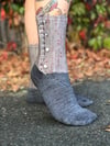The McKeene Socks are inspired by the fashion of the era. Sturdy enough for fighting zombies by night, pretty enough to attend a picnic luncheon by day.