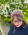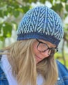 Worked in two colors of your favorite fingering or sport weight yarn, Hythe starts with a 1x1 ribbed brim and moves smoothly into the tree trunk brioche motif. The motif flows smoothly through the crown shaping, allowing the tree trunks to, seemingly, converge. The two-color tree trunk motif yields a geometrical motif on the “wrong side,” plus, the tubular cast-on means the hat look great no matter which side you choose. Match your hat to your outfit, your surroundings, or your mood!