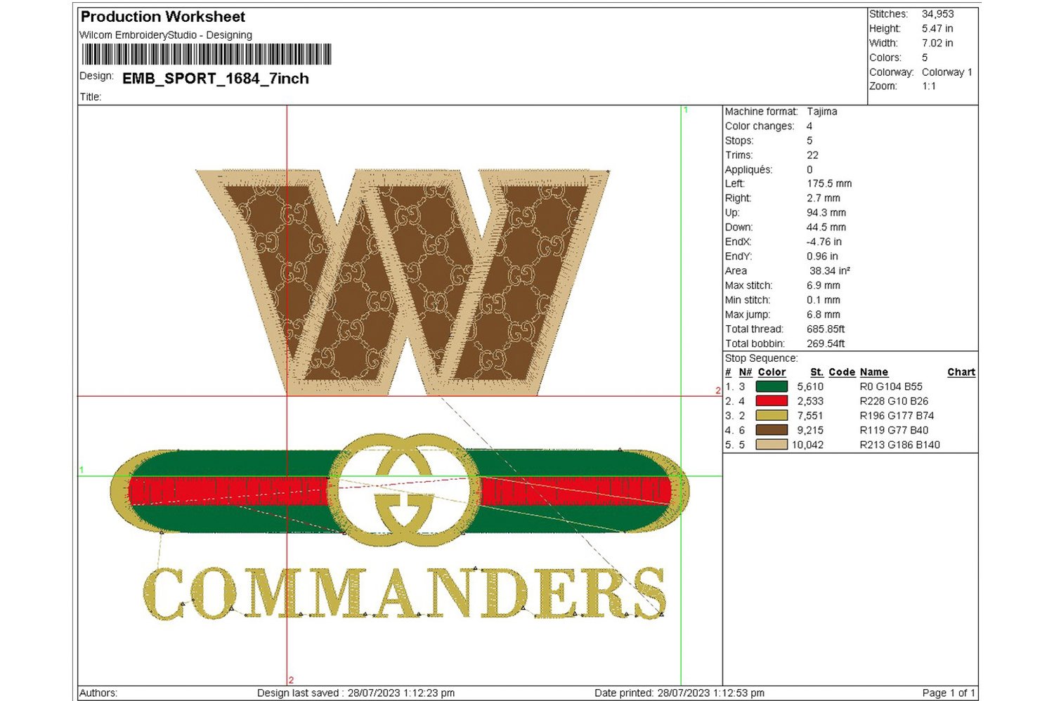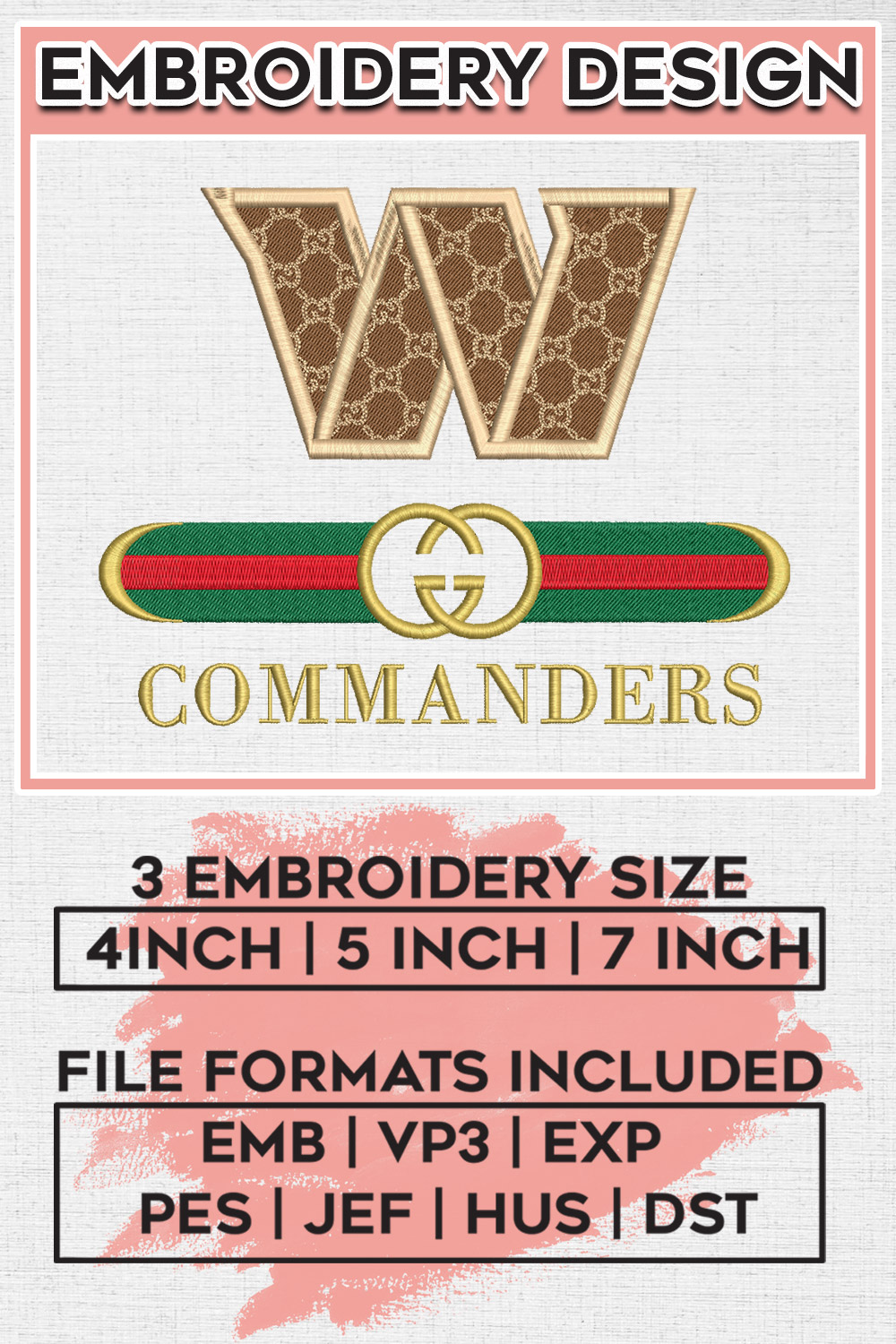 Guc.ci Washington Commanders Logo Embroidery Design Files, NFL Commanders, NFL Logo Embroidery Files, NFL Washington Commanders Machine Embroidery Design, Digital Downlo
