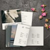 前撮り写真やラブストーリーなど、より多くの情報をウェディングブックに含めたい場合は、この8ページの結婚式のプロフィールブックテンプレートが最適です。