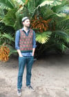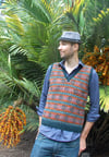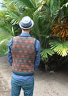 This is a pattern for a Fair-Isle style slip-over/vest. It is worked in the round and from the bottom up. The neck and armholes are worked with steeks. After the steeks have been prepared and cut, the neck and armhole ribbing is worked.