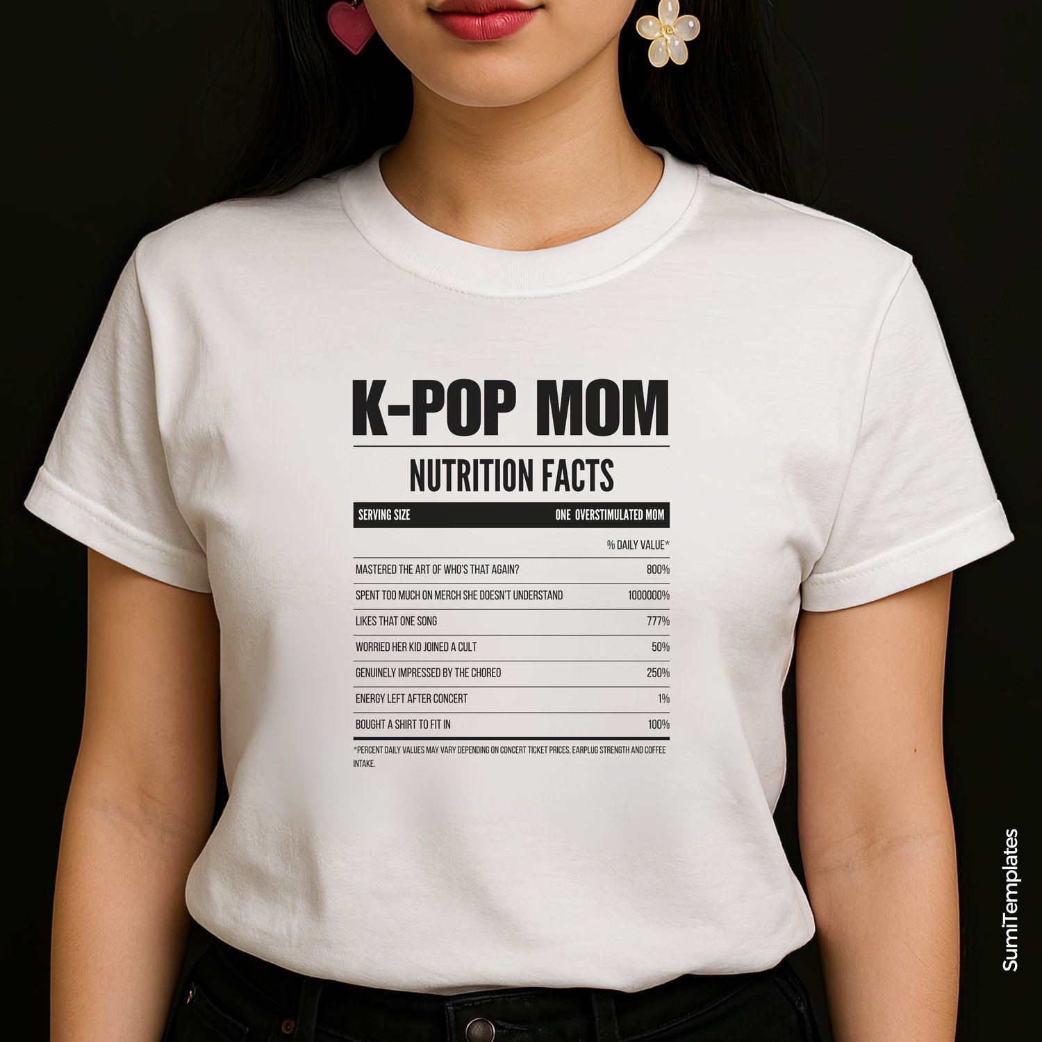 Make your own K-Pop Mugs, T-Shirts, Hoodies and more with this funny K-Pop Fan Nutrition Facts Design. Perfect for DIY projects with cricut, sublimation or for making DIY Merch.