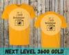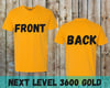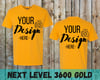 Front and Back Gold Tshirt Mockup, Gold Next Level 3600 T-shirt MockUp, Dark Wood Background, Instant Download