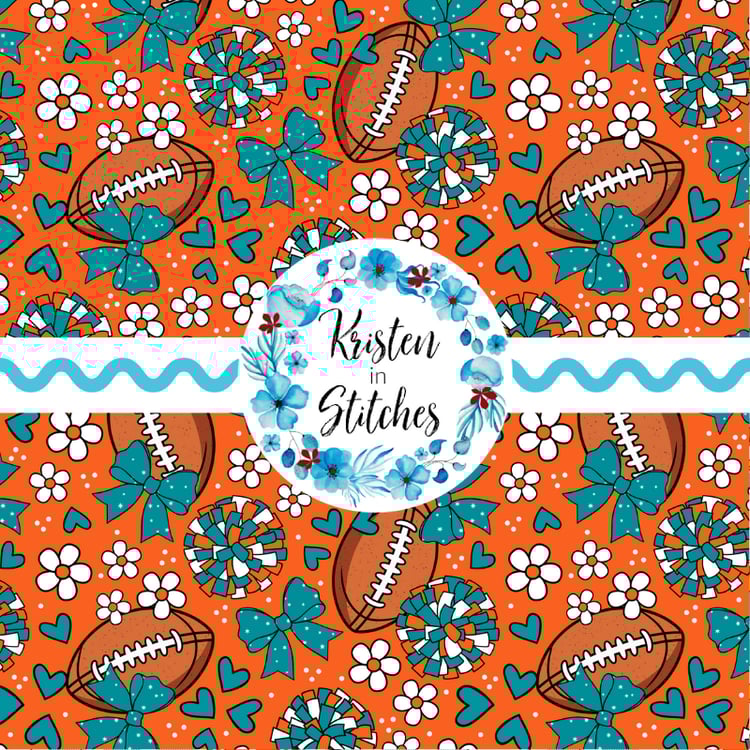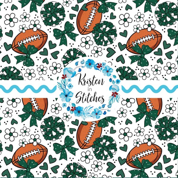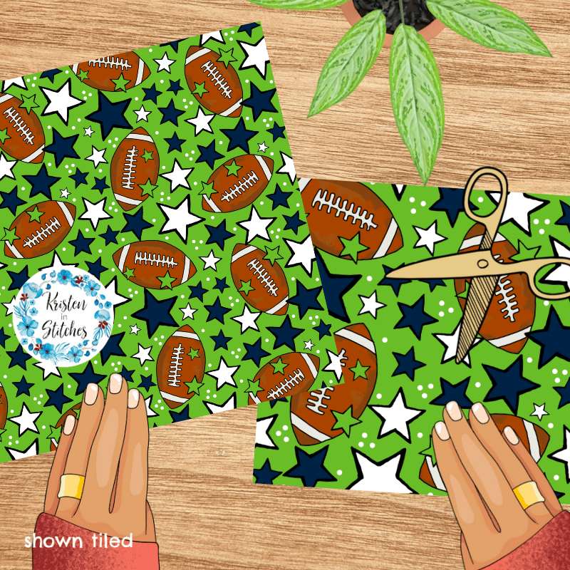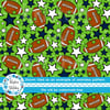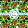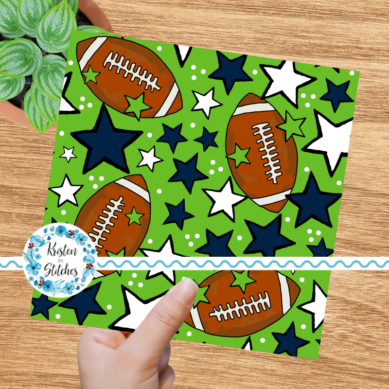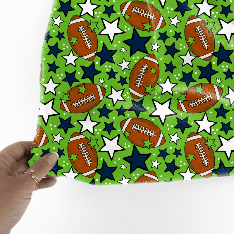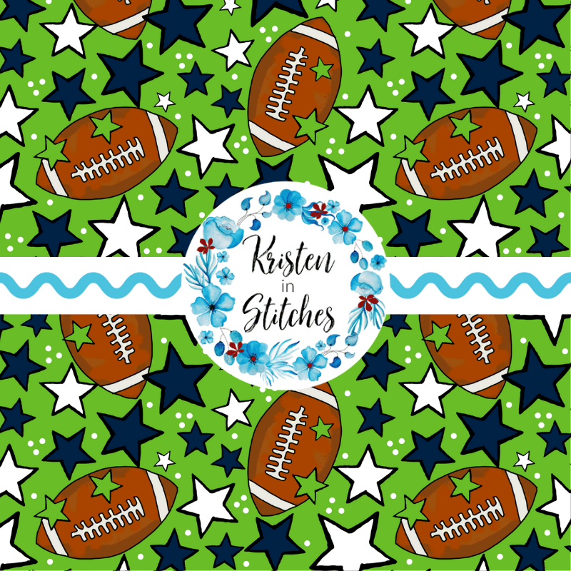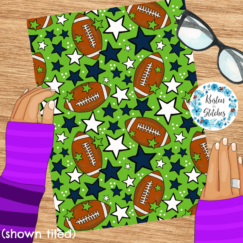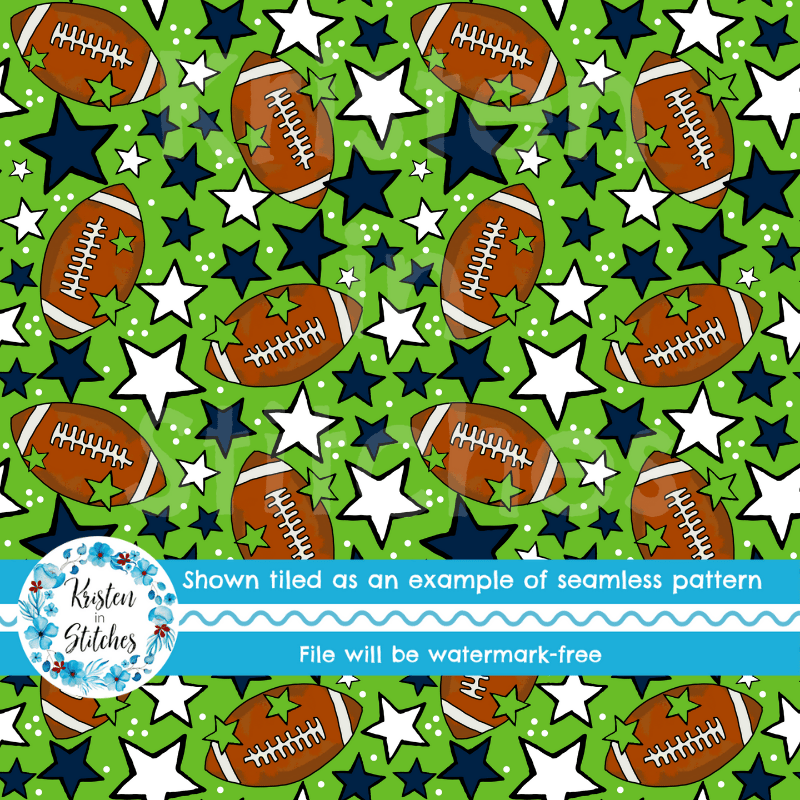 Footballs and stars in Seattle Seahawks colors navy blue and green.