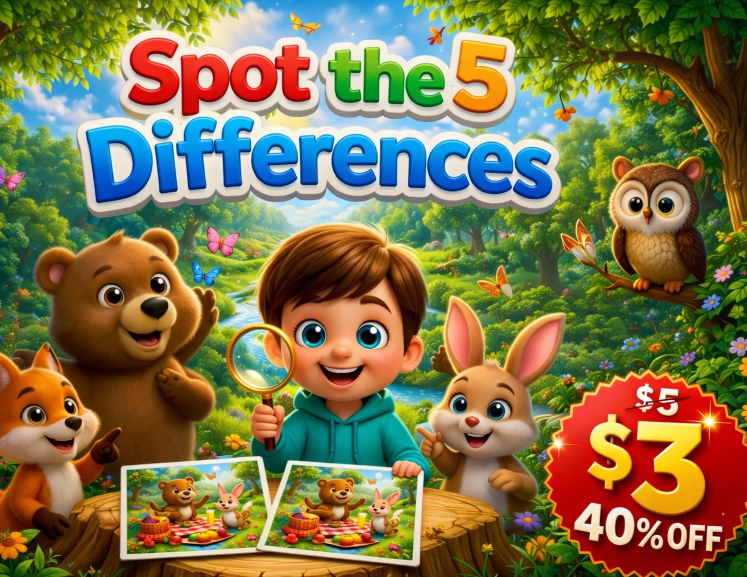 Fun, colorful, and educational! π A perfect Spot the Difference book for kids ages 4β8 with 32 pages of exciting puzzles that boost focus and creativity. Can you find all the differences? π