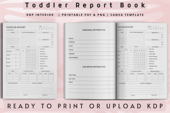 This Toddler’s Daily Log Book is a great way to keep track of the daily schedule and activities of your toddler. It gives you specific information about the type of food they like, how long they sleep, the type of toys they play with, any dangers they encounter, when they wake up and go to bed, and more!
