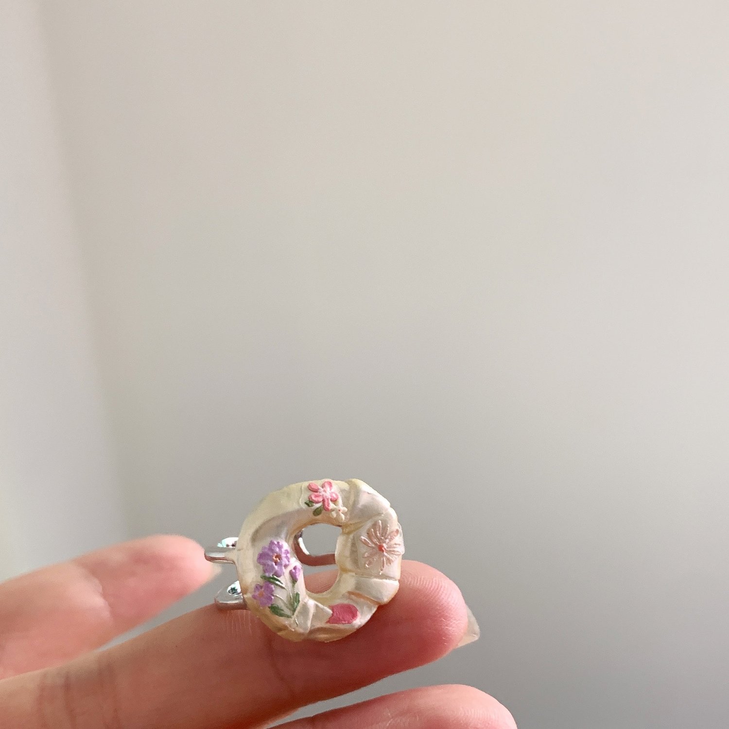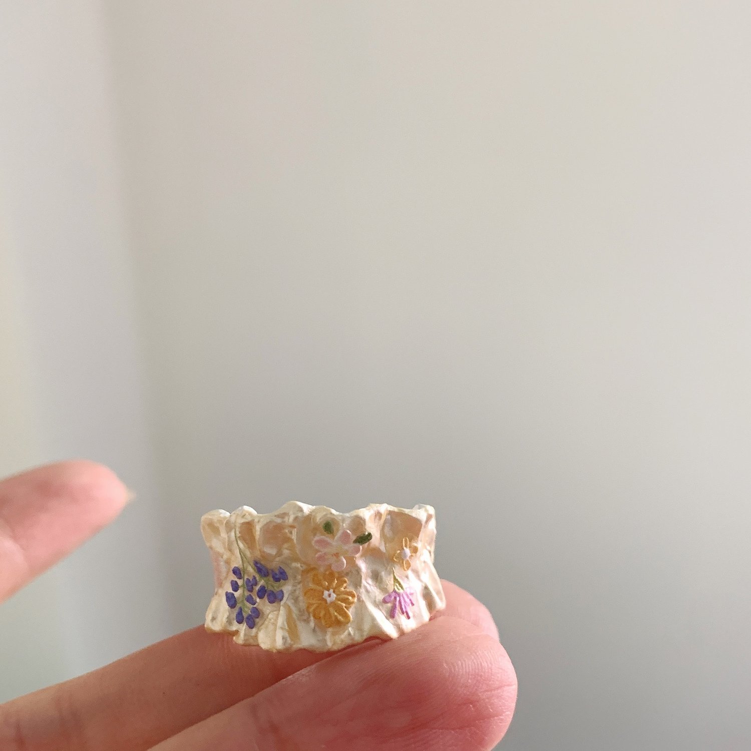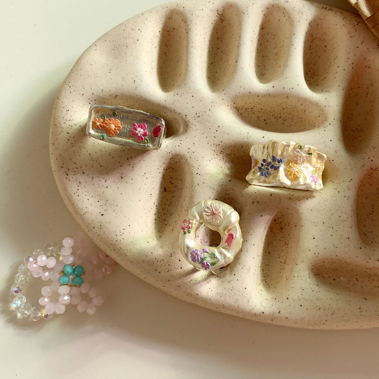 Handmade colorful dripping oil enamel beaded woven flower sweet stacking rings