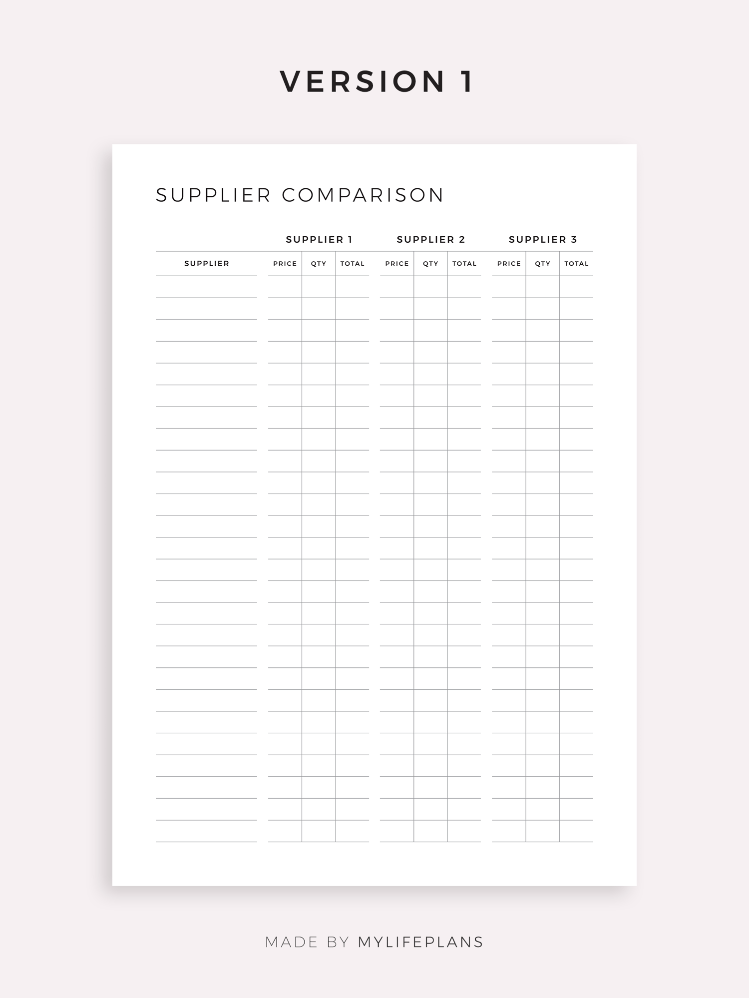 This is a printable supplier comparison template — just download, print, and start using it right away.