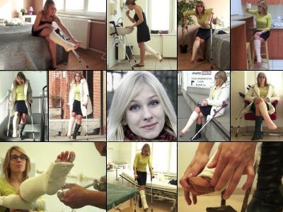 Mimi is having trouble getting around on crutches and one fully casted leg, and she confides that to her friend at the bus stop when the bus does not seem to be coming and her friend suggest they walk to their destination. So, her friend suggests they try out a few ways to help with Mimi's mobility. She tries hoping on her one good foot, getting around on one crutch and continuing two crutches while her friend helps holding her sticks while she tries the different mobility options out. It's very tough going for her on the rocky gravel and you can see it on her face with each painful step. Finally, though she really decides to ditch the sticks and continues with her friend gimping on her casted leg unassisted while she balances on her one good foot with a hi-top on it. An excellent crutching and mobility clip with a few closeup scene of Mimi’s long pretty, painted toes.