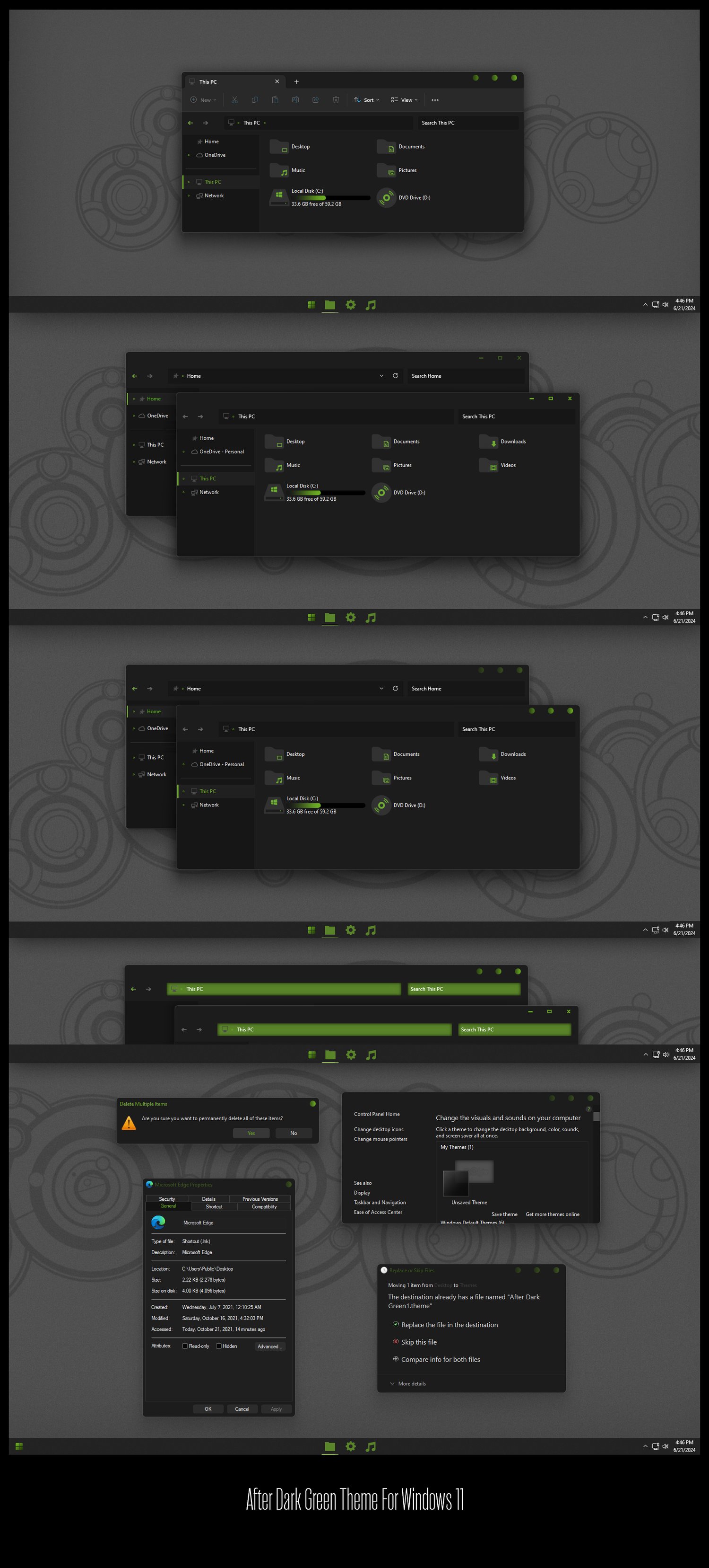 After Dark Green Theme For Windows 11