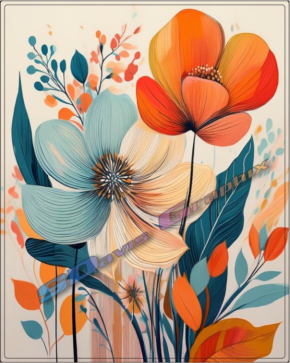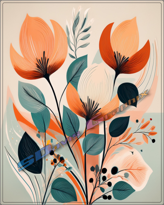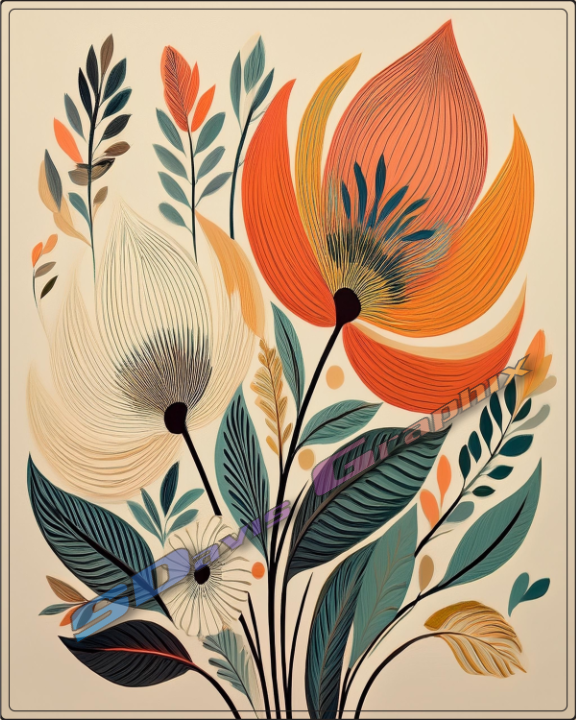 Abstract Boho Style Flowers Prints - Digital Download Prints