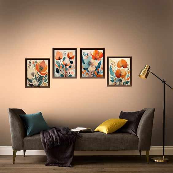 Abstract Boho Style Flowers Prints #2 - Digital Download Prints - Digital Wall Art - Set of 4 Abstract Flower Prints