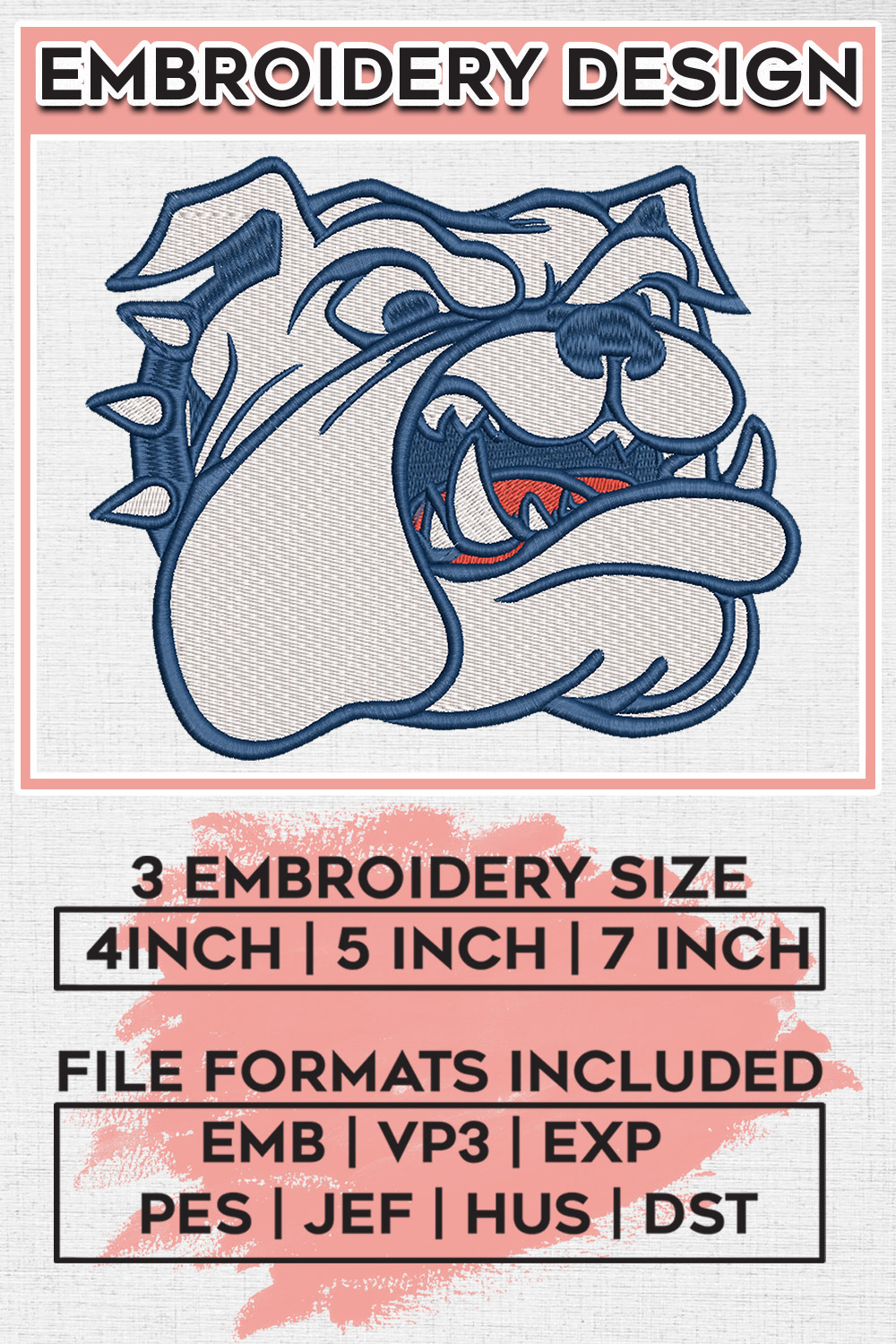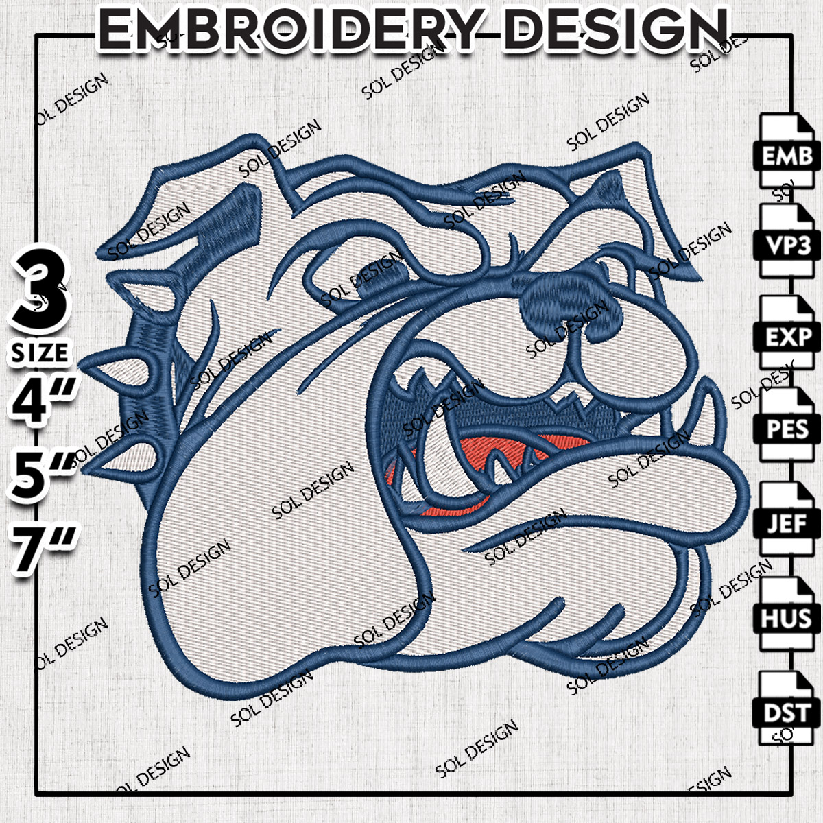 NCAA Samford Bulldogs Football Team Head Mascot Logo Embroidery Files, NCAA Samford Bulldogs Team Embroidery, NCAA College Football Teams, Samford Team Emroidery, 3 sizes, Machine embroidery designs, Digital Download