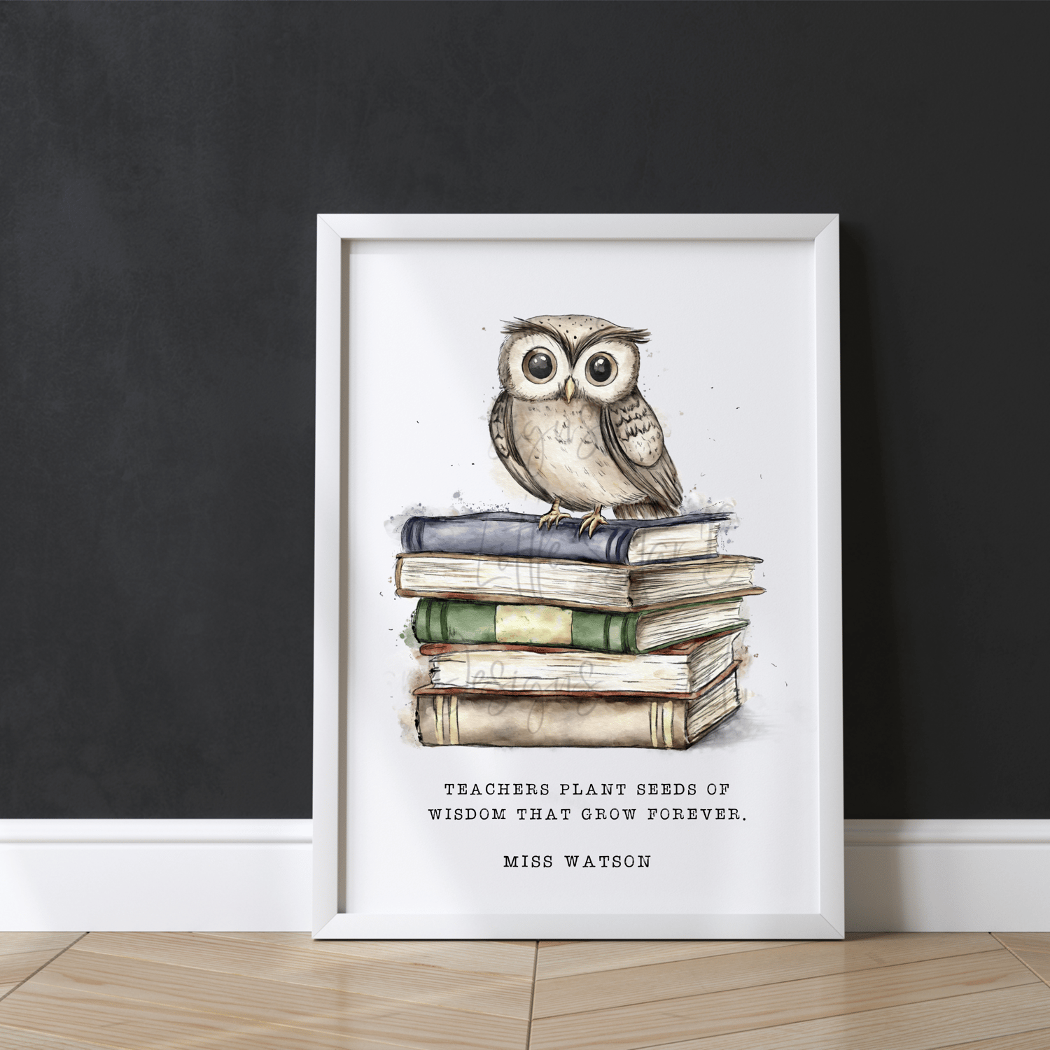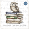 ⭐️ Inky Watercolour illustration featuring an owl perched on a stack books (1 PNG)