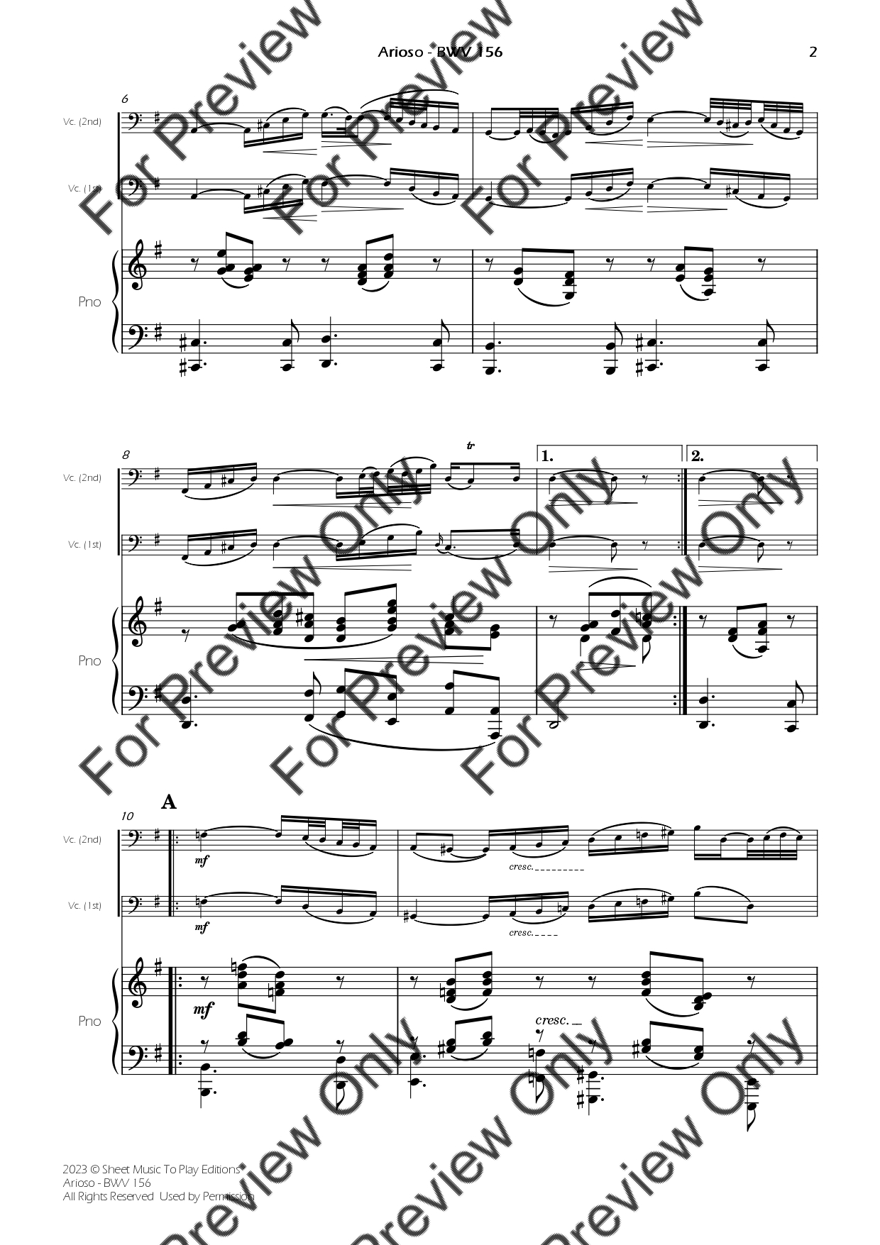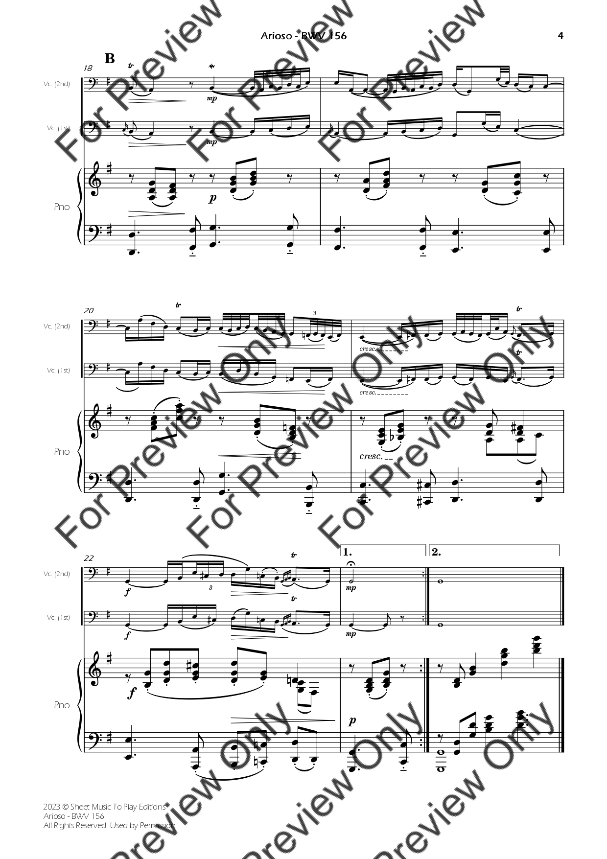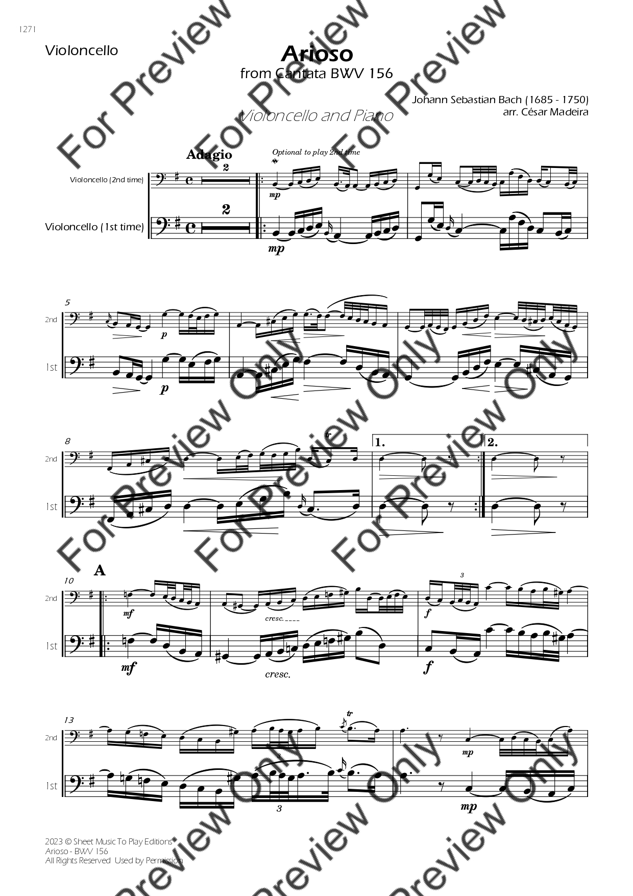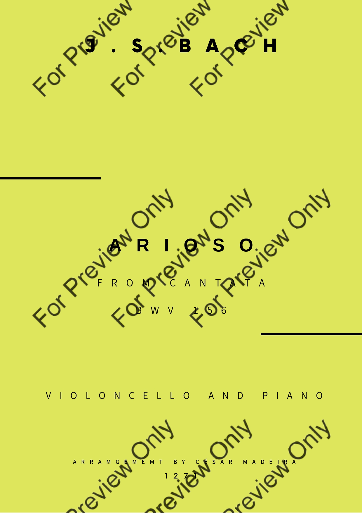 Arioso from Cantata BWV 156 by Johann Sebastian Bach. Arrangement for Violoncello and Piano. With Full Score and Individual Parts. Have fun!